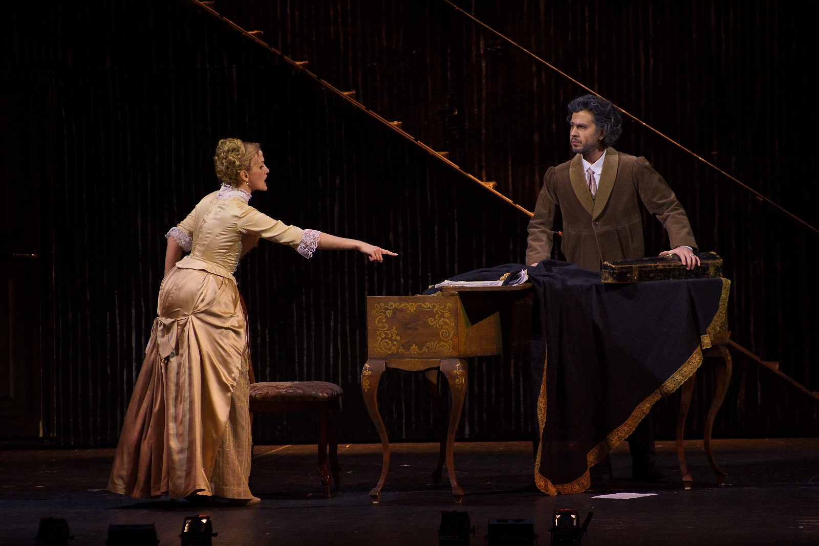 But Hoffmann finds Antonia. So does Miracle. Hoffmann accidentally overhears a conversation between Crespel and Miracle and learns that Antonia is ill. He makes her promise never to sing again, to forget her dreams of the stage, and to devote her life to family.