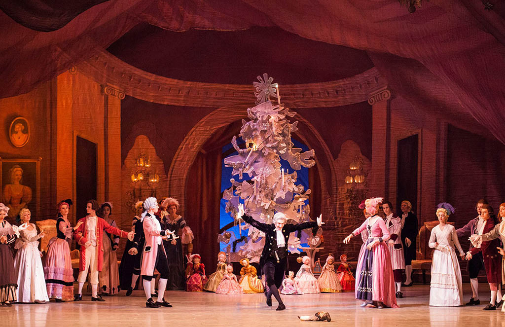 Drosselmeyer now appears. But instead of her kind godfather, he has turned into a wizard. At a wave of his hand everything around them is transformed: the walls of the room slide back, the Christmas tree starts to grow. And all the toys come alive and grow together with the tree.